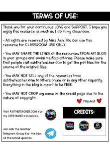 2. EVERYTHING IS SHARED FOR FREE FOR PERSONAL USAGE. THEREFORE, MATERIALS, LESSON PLANS OR MODULES FROM THIS BLOG CANNOT BE SOLD!